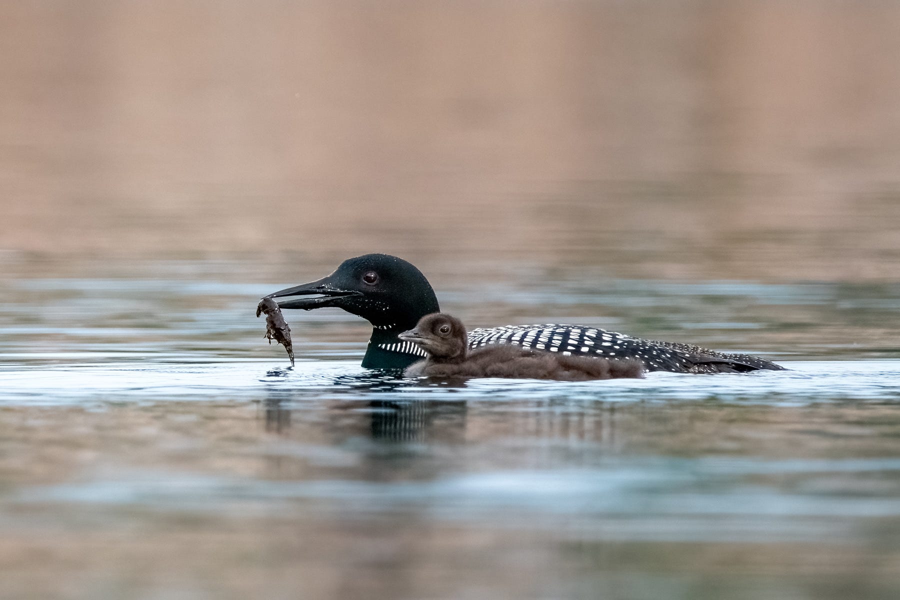 I’d dreamed of photographing a family of loons, the iconic bird seen on the Canadian one-dollar coin we call the “loonie”. But for a long time only the adults were brave enough to swim close to our family cottage in the northern Great Lakes in Ontario, Canada. It took paddling a kayak to a secluded bay nearby to find one and finally witness the care both parents give their young. Then trying to capture the moment without disturbing them.